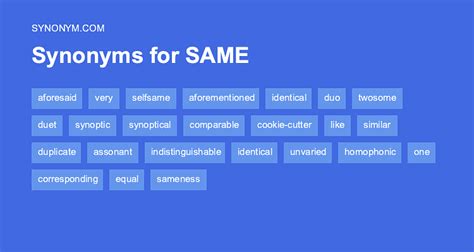 Contexts adjective (similar to) denoting a resemblance when comparing one to another equivalent in meaning or effect preposition. On this page you'll find 92 synonyms, antonyms, and words related to same, such as: Different, other, unlike, dissimilar, distinct, diverse, distinctive, distant Identical, similar, comparable, analogous, equivalent, equal, such, duplicate; Comparable, analogous, like, alike, such, parallel, identical, corresponding; Carbon, clone, ditto, double, dupe, and duplicate. Web find 1,131 synonyms for same and other similar words that you can use instead based on 8 separate contexts from our thesaurus. # style analogous to adj. Web find 18 ways to say same as, along with antonyms, related words, and example sentences at thesaurus.com, the world's most trusted free thesaurus. Same, selfsame, very, similar, comparable, analogous, equivalent, indistinguishable; Contexts adjective (similar to) denoting a resemblance when comparing one to another equivalent in meaning or effect preposition.