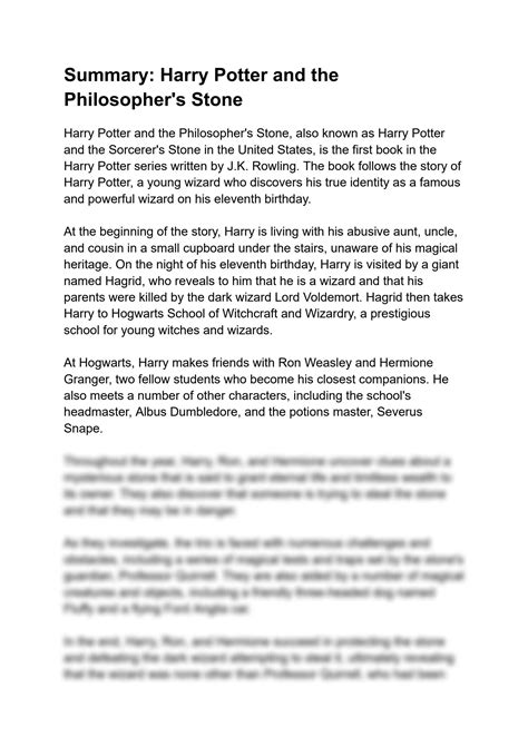 Harry Potter And The Philosophers Stone Book Summary Short / Harry